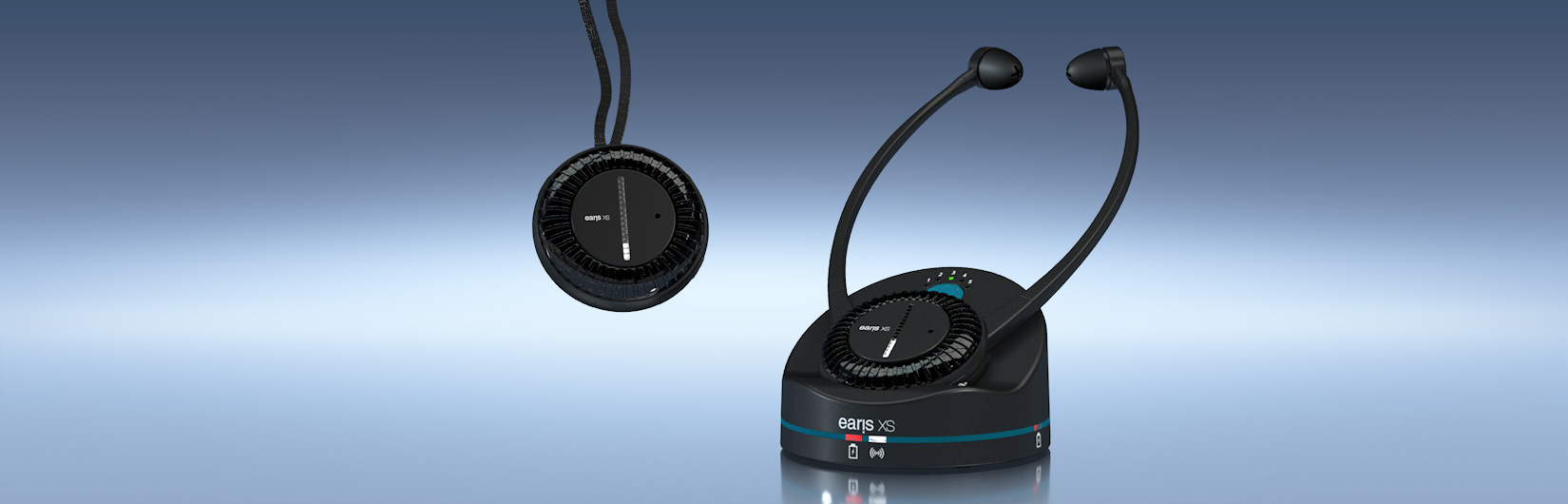 »earis® XS«, the second system in the »earis®« series, integrates the essential features of the top model and is therefore comparable with TV listening systems from the premium segment of other manufacturers available on the market.