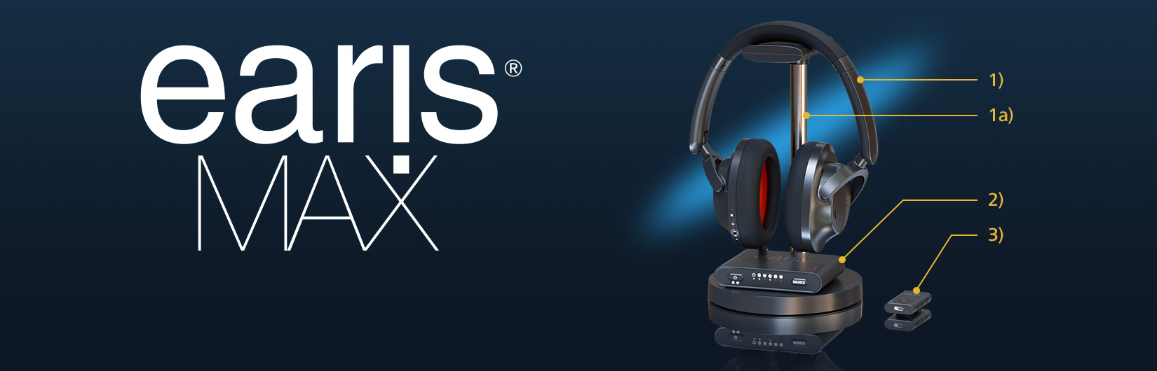 >2New from April 2024:2< »earisMAX« - the Bluetooth® Auracast™ system - convenient media listening at the cutting edge of Bluetooth® audio technology.