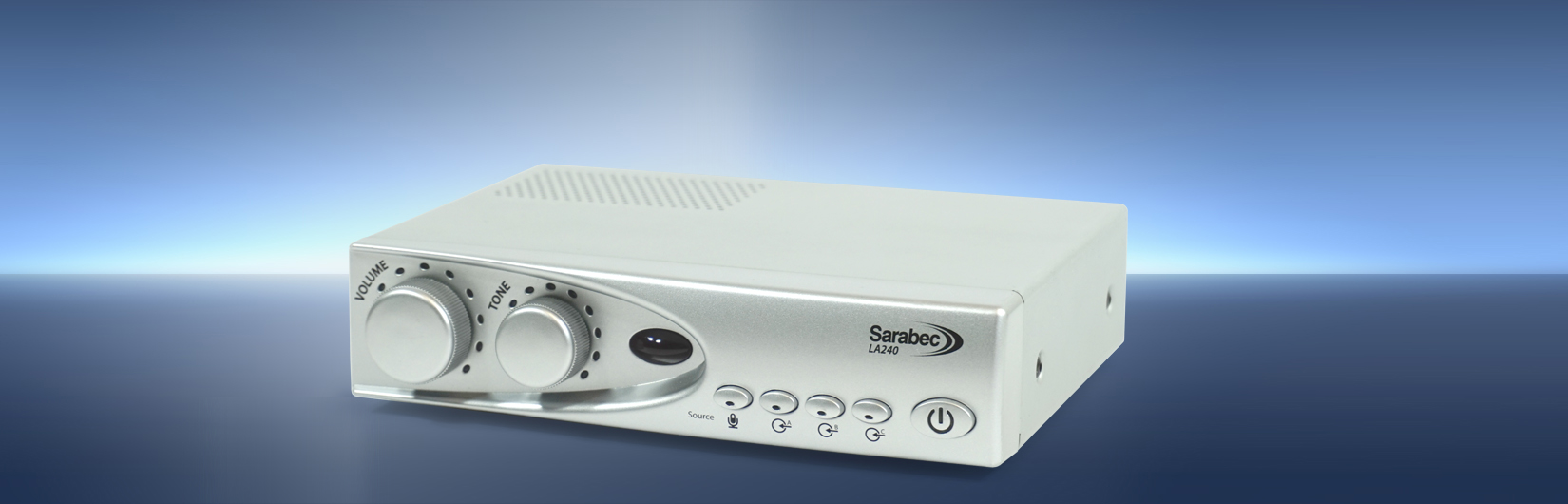 L’amplificateur de boucle magnétique est connecté à la source audio (téléviseur ou chaîne hi-fi). Le LA-240 est une évolution du précédent modèle LA-215 et est équipé d’une interface numérique TOSlink/coaxial.