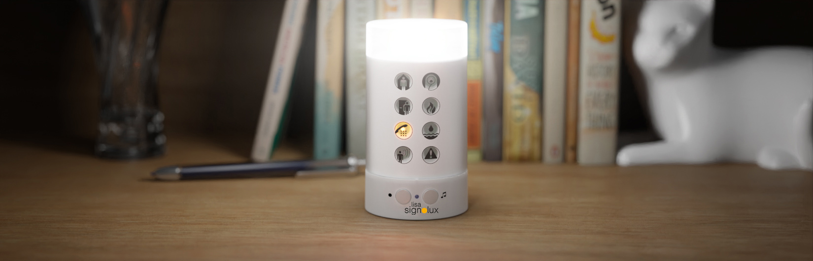 Der Akku-betriebene »Empfänger T« ist ein Produkt für Menschen mit Hörproblemen und meldet Ereignisse mit hellem Rundum-Blitzlicht, LED-Anzeige der Ereignis-Symbole und mit kraftvollem Signalton, dessen Lautstärke regelbar ist. Der Empfänger T stellt für die akustische Signalisierung 16 Tonfolgen bzw. Melodien zur Auswahl. Diese können den jeweiligen Ereignismeldungen individuell zugewiesen werden.