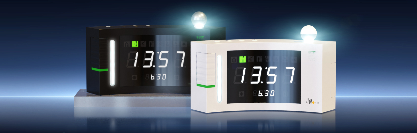 Der »DS-2« ist in drei Varianten verfügbar: als unabhängiger Lichtwecker und als Wecker mit vollwertiger »lisa«- bzw. »lisa-signolux«-Funkempfänger- Funktion.