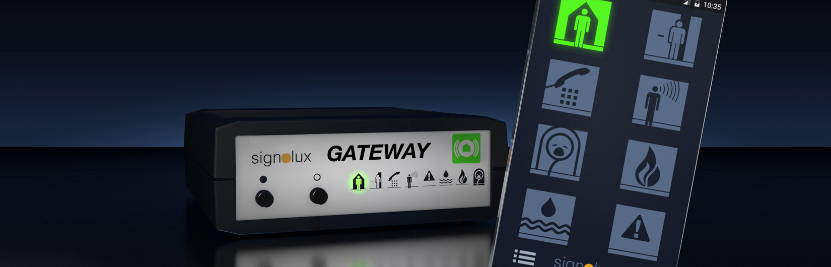 Der »lisa-signolux« Gateway-Empfänger stellt die Verbindung zwischen der »lisa-signolux«-Signalanlage und einem Router her, dieser speist die gemeldeten Ereignisse in die mobilen Netzwerke ein. So können »lisa-signolux«-Signale zu jeder Zeit an jedem Ort per Smartphone oder Smartwatch (Apple- und Android-Mobilkomponenten) empfangen werden – im Prinzip überall auf der Welt.