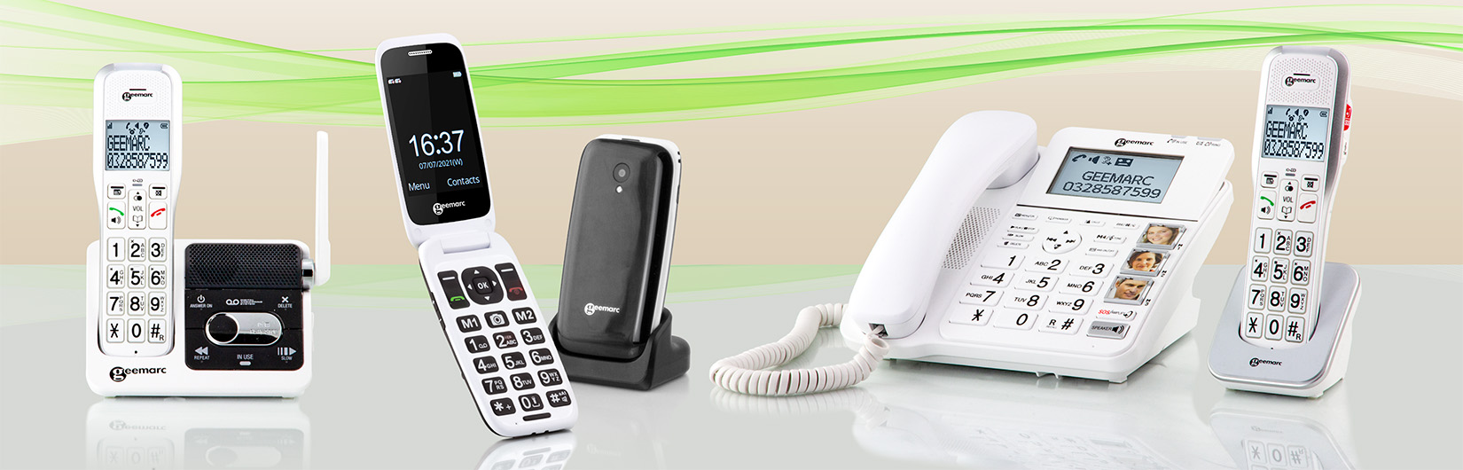 Das Programm umfasst mit der Reihe Geemarc AMPLIDECT 595 sowohl schnurgebundene als auch schnurlose Modelle mit Basisstation und Mobilteil sowie Notruf-Funktion. Die Geemarc CL-Reihe enthält SIM-Karten-Telefone mit Notruffunktion. Neben den beiden 4G-Mobiltelefonmodellen CL8000 und CL8700 handelt es sich bei dem Modell CL9000 um ein stationäres SIM-Karten-Telefon mit SOS-Notruf-Armband.