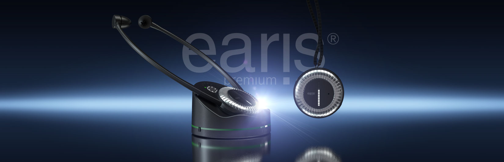 Das Design von »earis® premium« mit seinen LED-Statusanzeigen repräsentiert einen »zeitlos jungen Auftritt« mit elegantem Hightech-Akzent. Das große, hochglänzende griffige Stellrad für die Volumenregelung bis zu 120 dB (A) dominiert die Formgebung des Empfängers. LED-Anzeigen geben Statusinformationen über Ladezustände, die Hörprofil-Auswahl und die jeweils eingestellte Lautstärke. Der Balance-Regler auf der Rückseite der Empfänger dient dem Rechts-Links-Ausgleich entsprechend der individuellen Rechts-/Links-Verteilung des Hörverlusts. »earis® premium« integriert zudem die Funktionalität eines Gesprächsverstärkers.